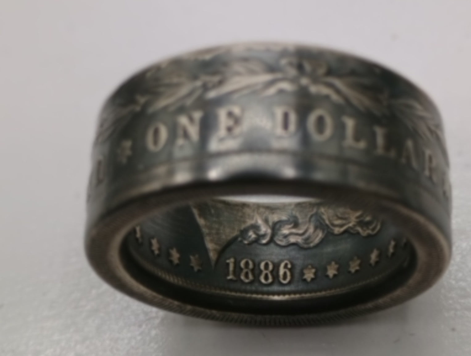 1886, The Statue of Liberty was dedicated, the first gasoline powered auto was invented. And the first Coca Cola was sold! Now that's some history! This heavily antiqued Morgan is a fine representation of the era it was minted in. I put a dark patina on this one simply because the detail on this particular coin was quite exceptional for its age. I was really able bring it out with a little brushing. Not shiny but bold. Make a statement.