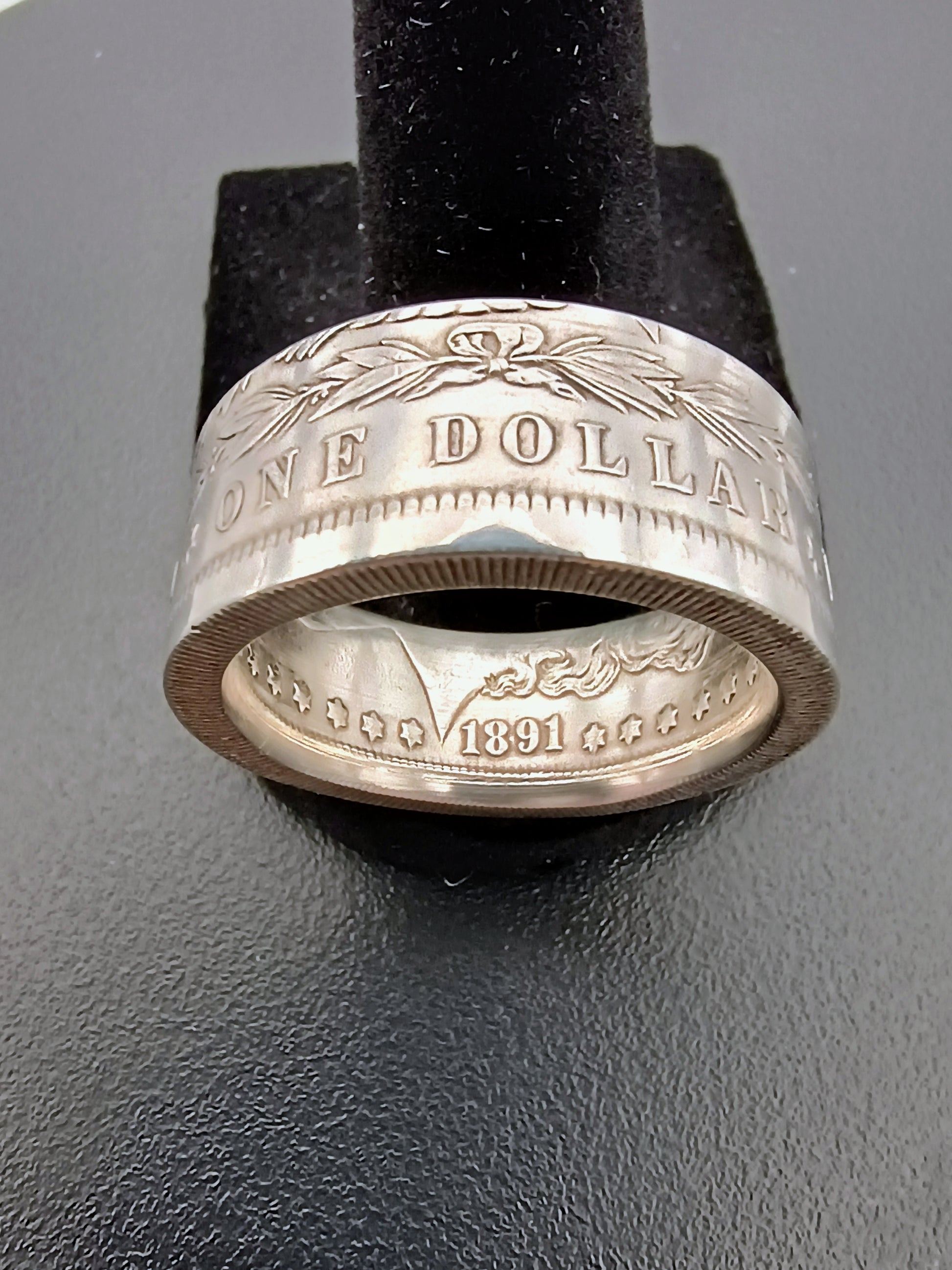 1891 Polished Morgan Silver Dollar Ring Size 12.25