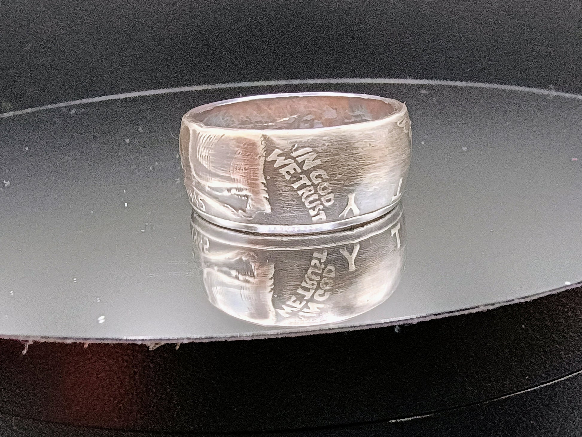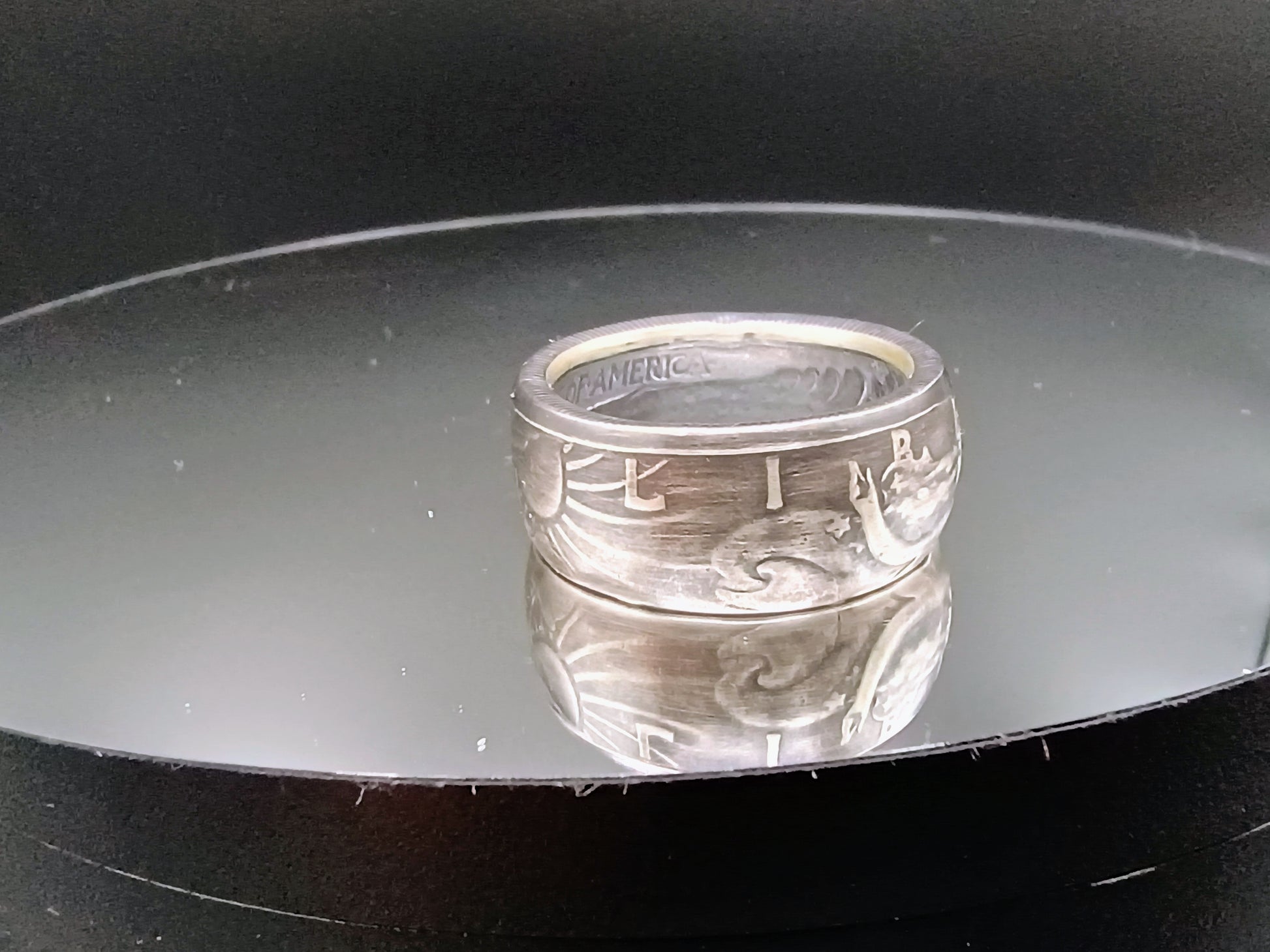 The detail really pops on this piece. Heavy patina was applied to this ring .