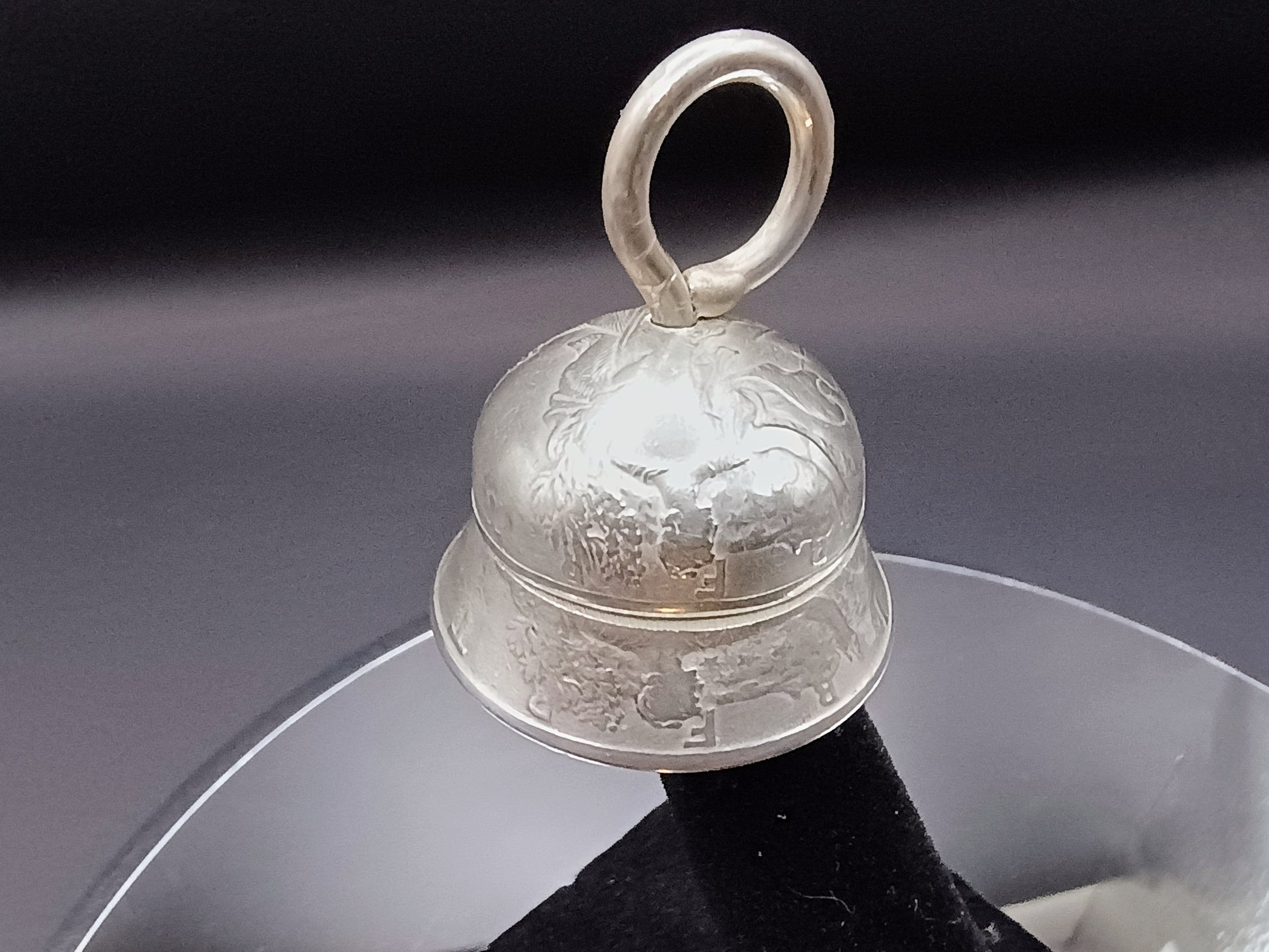 Both coins minted in the era of our greatest generation. This bell rings, of what fighting for freedom is all about. Bell is 90% silver the stem and clapper ring are 925 silver .