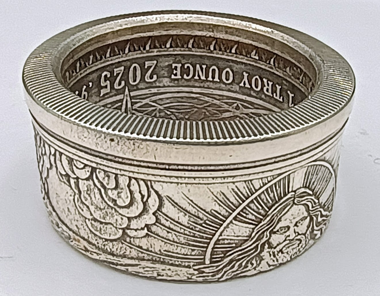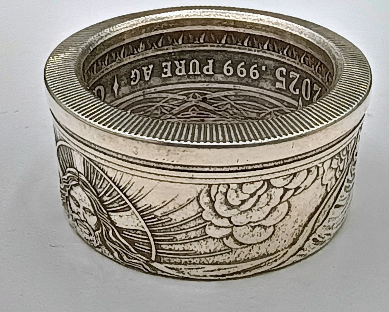 It's a wonderful image of Jesus with detail surrounding the entire ring with the details on the inner ring also staying intact.