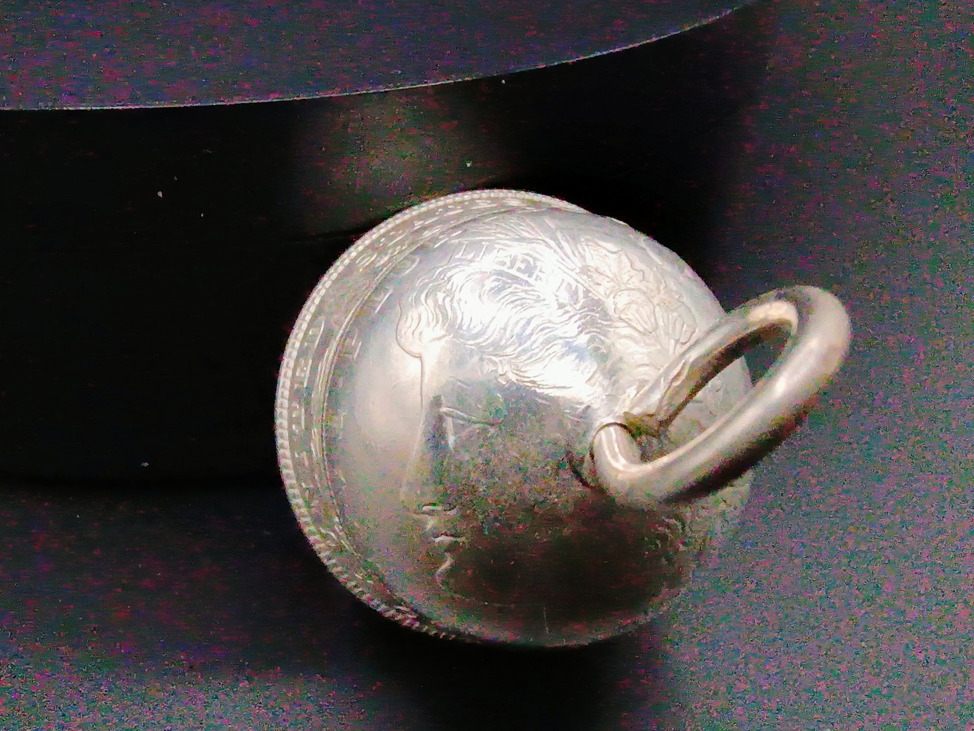 Made from 2 Morgan Dollars at %90 silver from 1921. This bell is polished to a mirror finish. Rings like freedom and would be the perfect accessory to any Motorcycle. The entire bell is made of silver so the Werewolves will leave it alone.