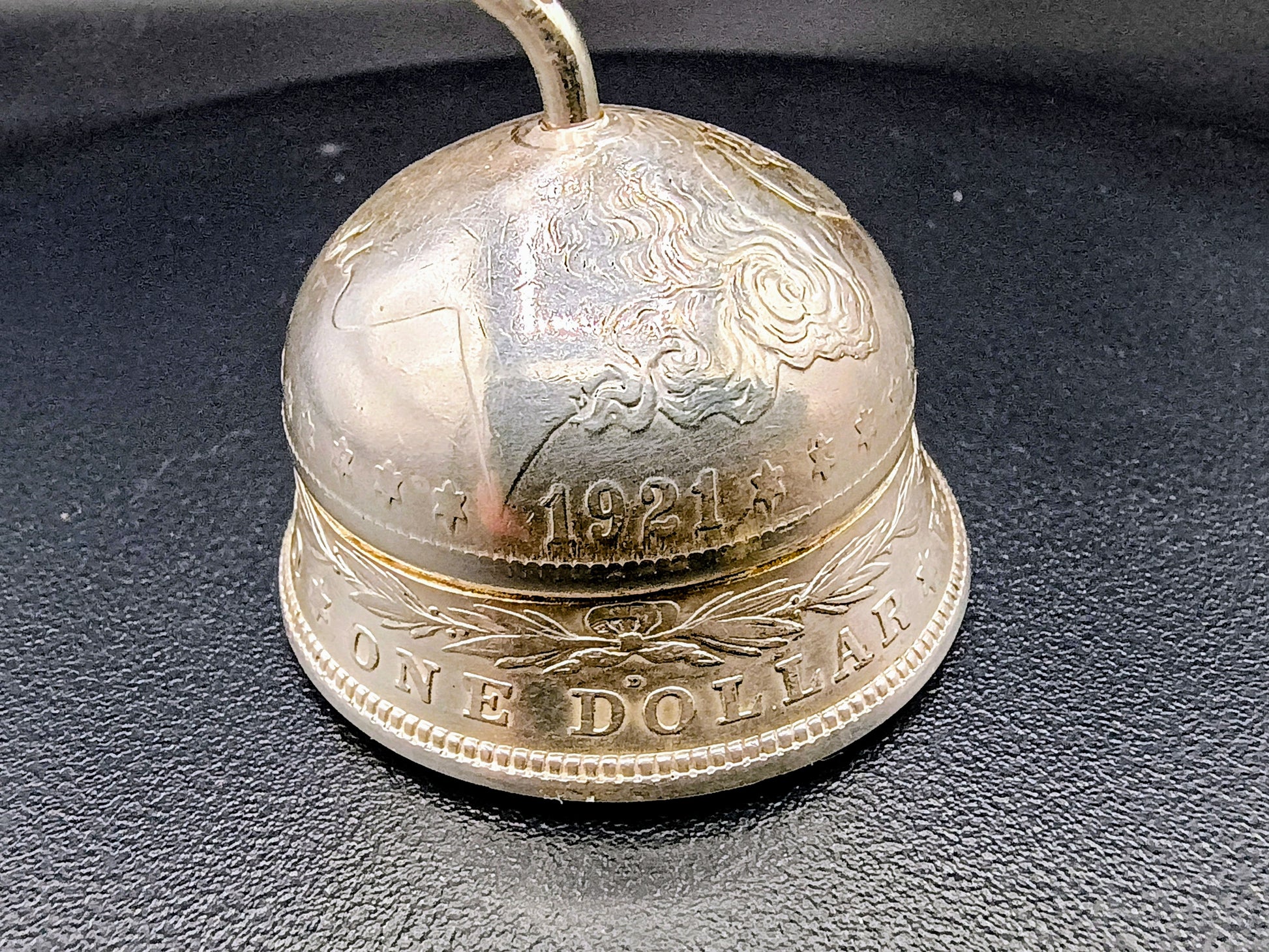 Large Polished "Heads Up" Morgan Silver Dollar Biker Bell