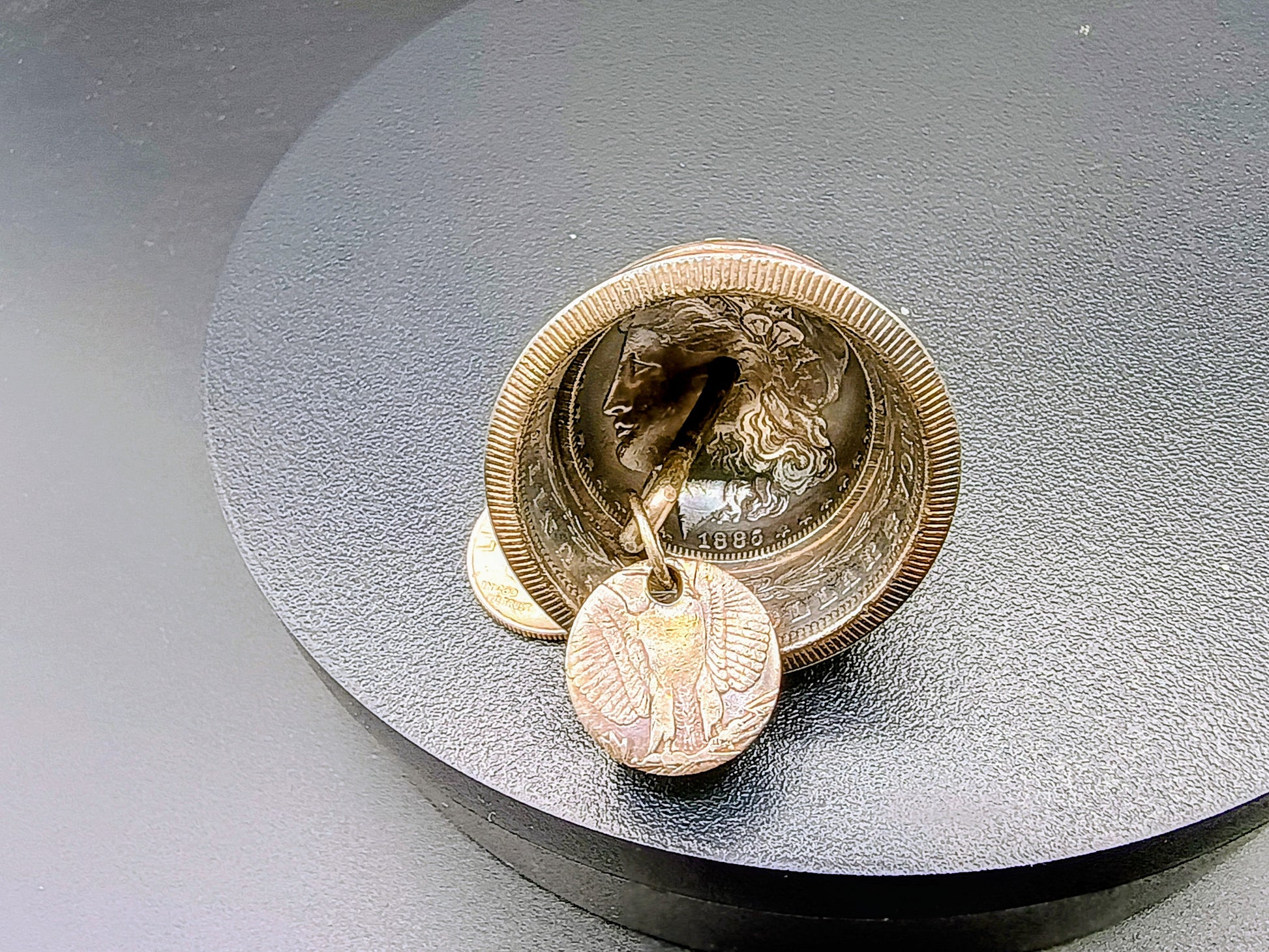 Large Antiqued Silver Morgan Dollar Biker Bell